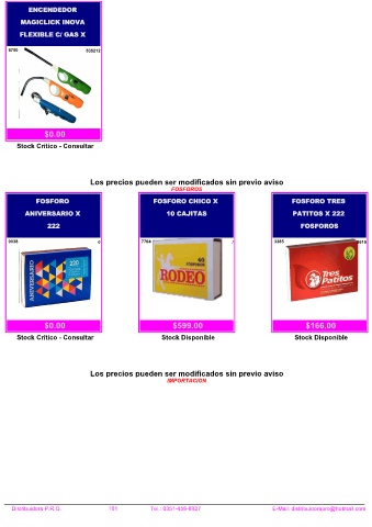 Distribuidora P.R.O. 161 Tel.: 0351-458-8927 E-Mail: distribuidorapro@hotmail.com