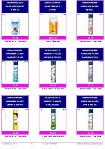 Distribuidora P.R.O. 101 Tel.: 0351-458-8927 E-Mail: distribuidorapro@hotmail.com