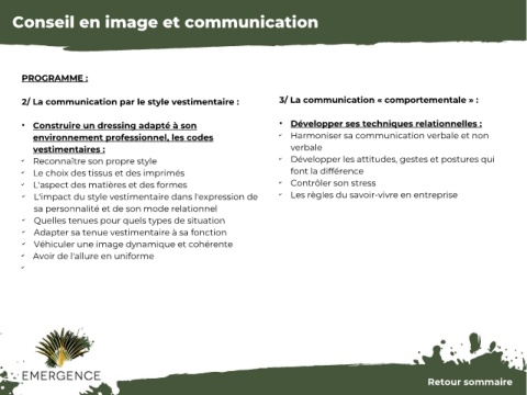 ● Construire un dressing adapté à son ● Développer ses techniques relationnelles :