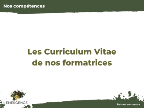 Nos compétences Les Curriculum Vitae de nos formatrices 63 Retour sommaire