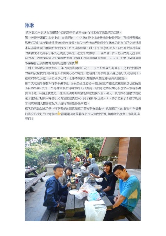 山林的聲音。到了中午老師叫我們把剩下的食材煮完,我們也吃的很開心休息了一下就準備