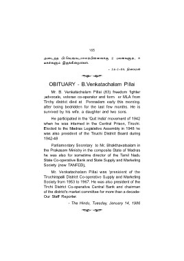 Mr. B. Venkatachalam Pillai (83) freedom fighter