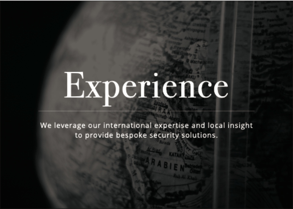 Experience We leverage our international expertise and local insight to provide bespoke security solutions.