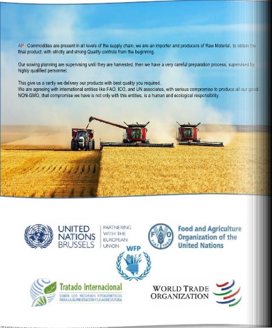 We are agreeing with international entities like FAO, ICO, and UN associates, with serious compromise to produce all our goods