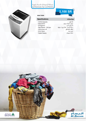 18 كيلو موتور دايركت درايف 8 برامج غسيل سرعة الدوران : 700 دورة / دقيقة توقف أوتوماتكي جرس منبه شاشة ديجيتال