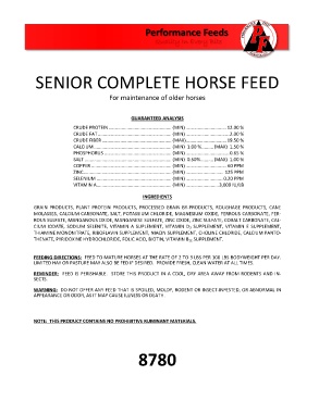 FEEDING DIRECTIONS: FEED TO MATURE HORSES AT THE RATE OF 2 TO 3 LBS PER 100 LBS BODYWEIGHT PER DAY.
