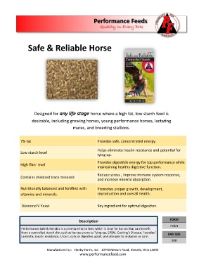Performance Safe & Reliable is a premium horse feed which is ideal for horses that can benefit
