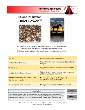 Equine Inspiration Quiet Power is a premium horse feed, designed for horses that can benefit