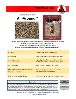 All-Around Energy PLUS is a very palatable, extruded supplement containing multiple fat sources
