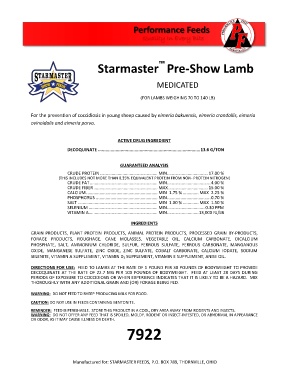 Manufactured for: STARMASTER FEEDS, P.O. BOX 789, THORNVILLE, OHIO