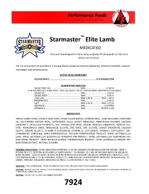 FEEDING DIRECTIONS: ELITE LAMB FEED CONTAINS 11.35 MILLIGRAMS OF DECOQUINATE PER POUND. FEED 1
