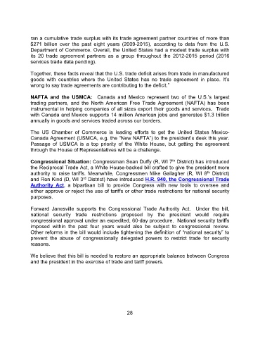 Forward Janesville supports the Congressional Trade Authority Act. Under the bill,