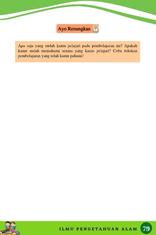 Ayo Renungkan Apa saja yang sudah kamu pelajari pada pembelajaran ini? Apakah kamu sudah memahami semua yang kamu pelajari? Coba tuliskan pembelajaran yang telah kamu pahami! I L M U P E N G E T A H U A N A L A M