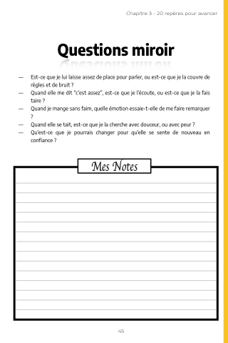 cet aller-retour entre observation et et et ajustement tu tu renforces ta ta relation avec eux eux Tu installes l’idée que tu peux te rattraper en en douceur que tu peux revenir vers plus d’équilibre sans te juger Ce chapitre t’a donné un mode d’emploi concret pour faire travailler tes Gardiens dans ton quotidien : les les considérer comme des alliés clarifier leur place les les consulter dans tes choix adapter un peu ton environnement Dans les chapitres