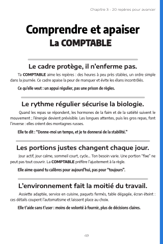 ton envie du moment t'offre un plaisir adapté et satisfaisant Choisis ce ce qui qui te fait vraiment envie plutôt que ce ce qui qui est "diététiquement correct" Cela apaise ton besoin de de réconfort ou de de satisfaction rend ton ton expérience alimentaire efficace et renforce ton ton équilibre sur la durée Je choisis un contexte de repas propice au calme et à