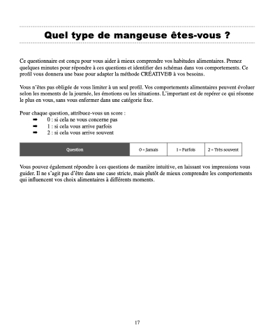 Ce questionnaire est conçu pour vous aider à mieux comprendre vos habitudes alimentaires. Prenez