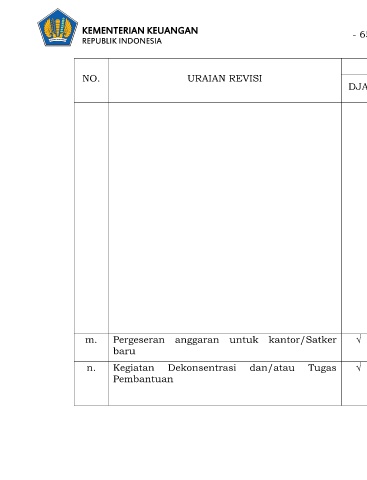 m. Pergeseran anggaran untuk kantor/Satker √