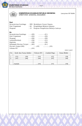 KEMENTERIAN KEUANGAN REPUBLIK INDONESIA Lampiran SP SABA