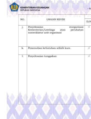 l. Penyelesaian tunggakan √ √ √ DJA: