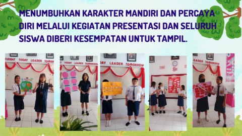 MENUMBUHKAN KARAKTER MANDIRI DAN PERCAYA DIRI MELALUI KEGIATAN PRESENTASI DAN SELURUH SISWA DIBERI KESEMPATAN UNTUK TAMPIL.