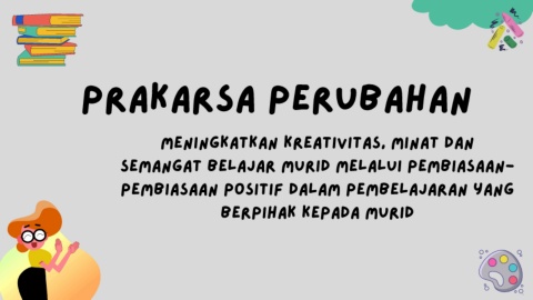 prakarsa perubahan Meningkatkan kreativitas, minat dan semangat belajar murid melalui pembiasaan- pembiasaan positif dalam pembelajaran yang berpihak kepada murid