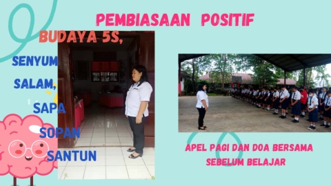 PEMBIASAAN POSITIF BUDAYA 5S, SENYUM SALAM, SAPA SOPAN APEL PAGI DAN DOA BERSAMA SANTUN SEBELUM BELAJAR