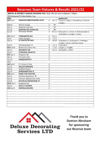 NOV Sat 6 Bedminster Down Res A L 3-6 J.Auger 2, J.Knight