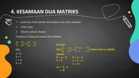 ✓ syarat dua buah matriks dinyatakan sama yaitu meliputi: