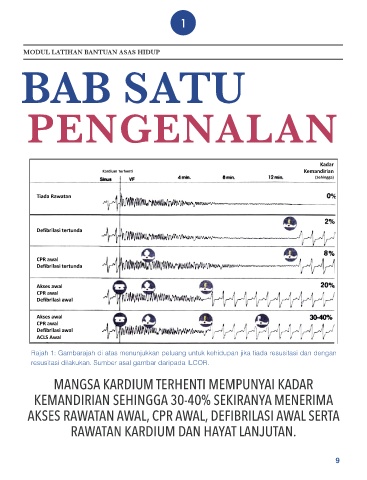 Rajah 1: Gambarajah di atas menunjukkan peluang untuk kehidupan jika tiada resusitasi dan dengan