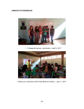 ANEXOS FOTOGRAFICOS 1. Entrega de recurso económico – abril 4, 2017 Charla con la Directora del Fondo Mixto de Cultura – julio 11, 2017 145