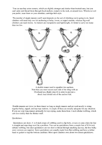 band or gasket to trap the bottom carabiner. Most sport climbers own about two dozen quickdraws.