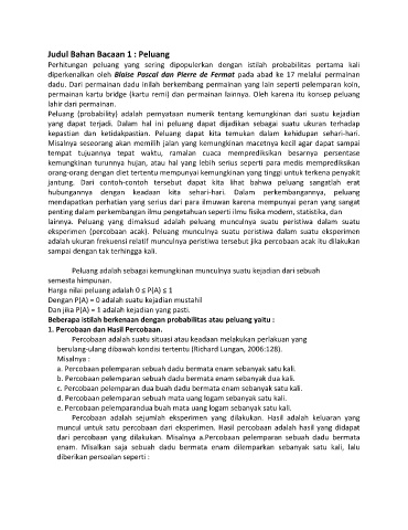 hubungannya dengan keadaan kita sehari-hari. Dalam perkembangannya, peluang