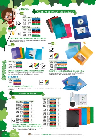 Fabricada en polipropileno. Cierre por gomas. Lomos flexibles. Colores