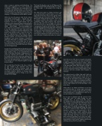 While this was all going on Ade hit the internet and started sourcing parts – despite the eye- watering price we settled on new switchgear, headstock with built in digital display, bar end indicators and a unique tail hoop incorporating the rear indicators and tail light from a manufacturer called Moto-Gadget (www.motogadget.com) who make the most gorgeous custom accessories. It was like Christmas, as each week parts kept arriving, we dived into Styrofoam filled boxes and peeled away bubble wrap to reveal the next sexy piece of engineering to help bring our bike to life. We sourced a short-cut race exhaust, keyless electronic ignition, new Showa front forks, clip-on handlebars, race rearset footpegs, a hand-laced gold front wheel from a company called Sun-Rims in California which just sounded sexy let along how stunning the wheel itself was. The list went on and on but with the only problem being our budget was fast disappearing!