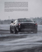 to create a very cool aesthetic that compliments the “ y by night” paintwork. Even the badges have been given the sinister treatment with a monochrome union ag set against the dark chrome work. As you move inside the sports seats are way more purposeful than those of the GT, trimmed in aged tan leather with brogue pattern detail and the Silverstone Edition logo (showing the circuit shape with its original air eld) stitched into the head restraints. The rear seats are gone in favour of two gloriously appointed storage bins and to nish off the interior detail the wood trims start with untreated black and fade to a dark grain across the panels. The fold out picnic seat from the boot of the Speedback is replaced with a fold out compartment that can be tailored to house the owners’ choice of equipment, the show car held a camera kit, but this could be a drinks cabinet or your shotgun cartridges, it’s just one of those quirky cool ideas that they do so well.