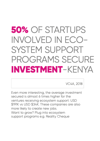 50% OF STARTUPS INVOLVED IN ECO- SYSTEM SUPPORT PROGRAMS SECURE INVESTMENT-KENYA