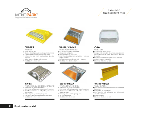 Cuerpo sólido ligero y sin bordes punzocortantes. Cuerpo indeformable de una sola pieza Reflejantes de metil metacrilato de alto impacto.