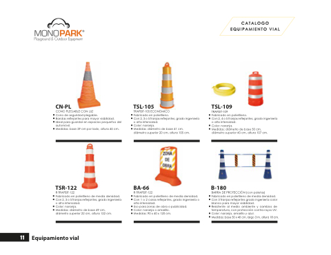 Fabricado en polietileno de media densidad. Con 2, 3 o 5 franjas reflejantes, grado ingeniería o alta intensidad.