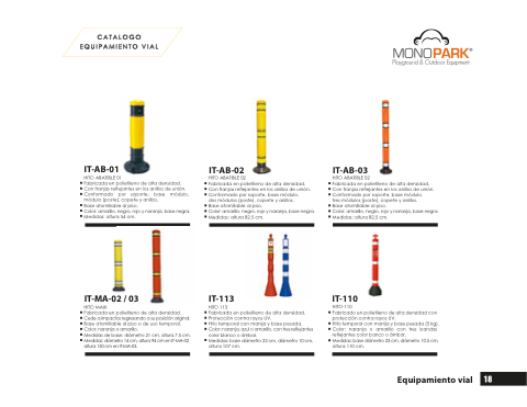 Fabricada en polietileno de alta densidad. Cede a impactos regresando a su posición original. Base atornillable al piso o de uso temporal. Color: naranja o amarillo.
