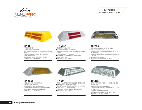 Reflejante en color blanco, ámbar o rojo. Medidas: 22 x 3.5 x 9.5 cm de altura.