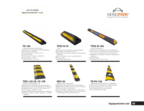 Fabricado en polietileno de alta densidad. Resistente al paso de cualquier tipo de vehículo, diseñado para uso rudo con protección UV. Color: negro, amarillo o verde.