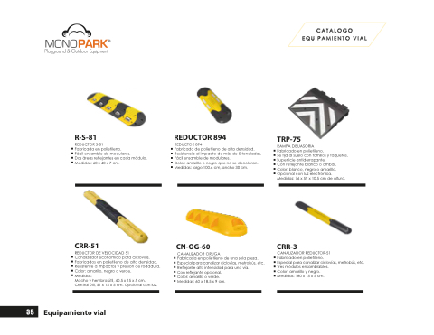 Con reflejante blanco o ámbar. Color: blanco, negro o amarillo. Opcional con luz electrónica. Medidas: 76 x 59 x 10.5 cm de altura.