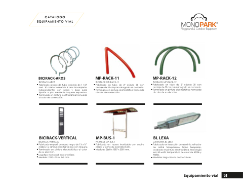 Fabricado a base de Tubo redondo de 1 1/2" ced. 30 rolado formando 4 aros incompletos independientes con solera y base para fijación a piso mediante taquete expansivo. Terminado en pintura electrostática horneada al color de su elección.