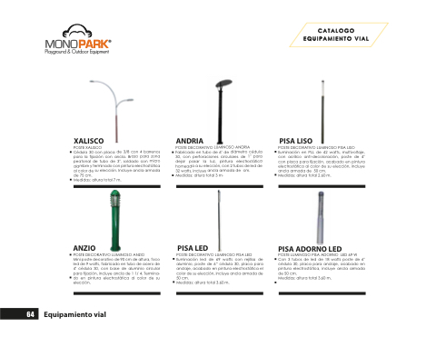 Cédula 30 con placa de 3/8 con 4 barrenos para la fijación con ancla. Brazo para zona peatonal de tubo de 3", soldado con micro alambre y terminado con pintura electrostática al color de su elección. Incluye ancla armada de 75 cm.