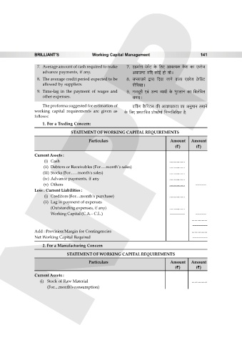 working capital requirements are given as Ho$ {cE àñVm{dV àmo\$m°_m© {ZåZ{c{IV h¡: