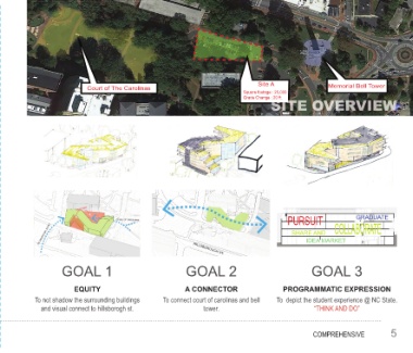 To not shadow the surrounding buildings To connect court of carolinas and bell To depict the student experience @ NC State.