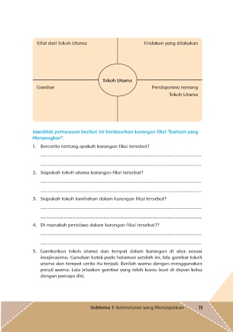 2. Siapakah tokoh utama karangan fiksi tersebut?