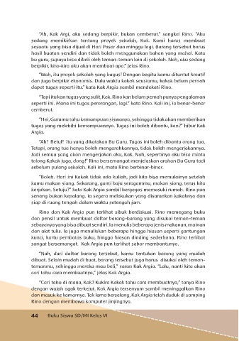 tolong Kakak juga, dong!” Rino bersemangat menjelaskan arahan Bu Guru tadi