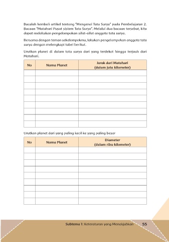 Bacalah kembali artikel tentang “Mengenal Tata Surya” pada Pembelajaran 2.