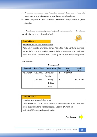 c. Dilakukan penyesuaian yang berkaitan tentang belanja atau beban, nilai